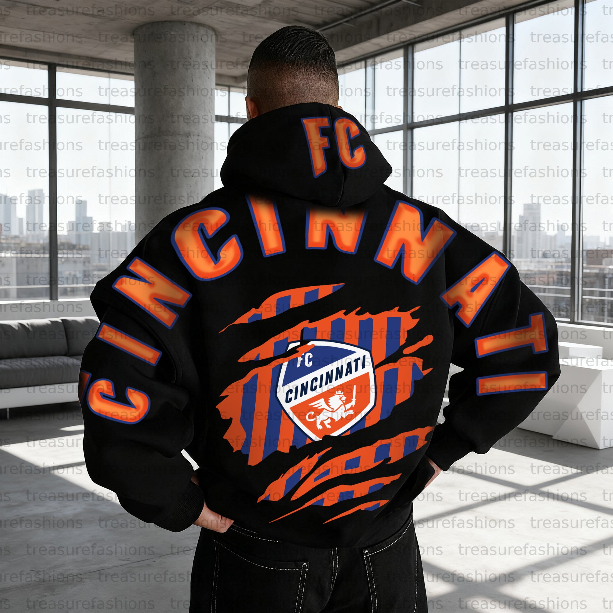 Unisex " FC Cincinnati" Graphic Streetwear Vintage Plush Hoodie