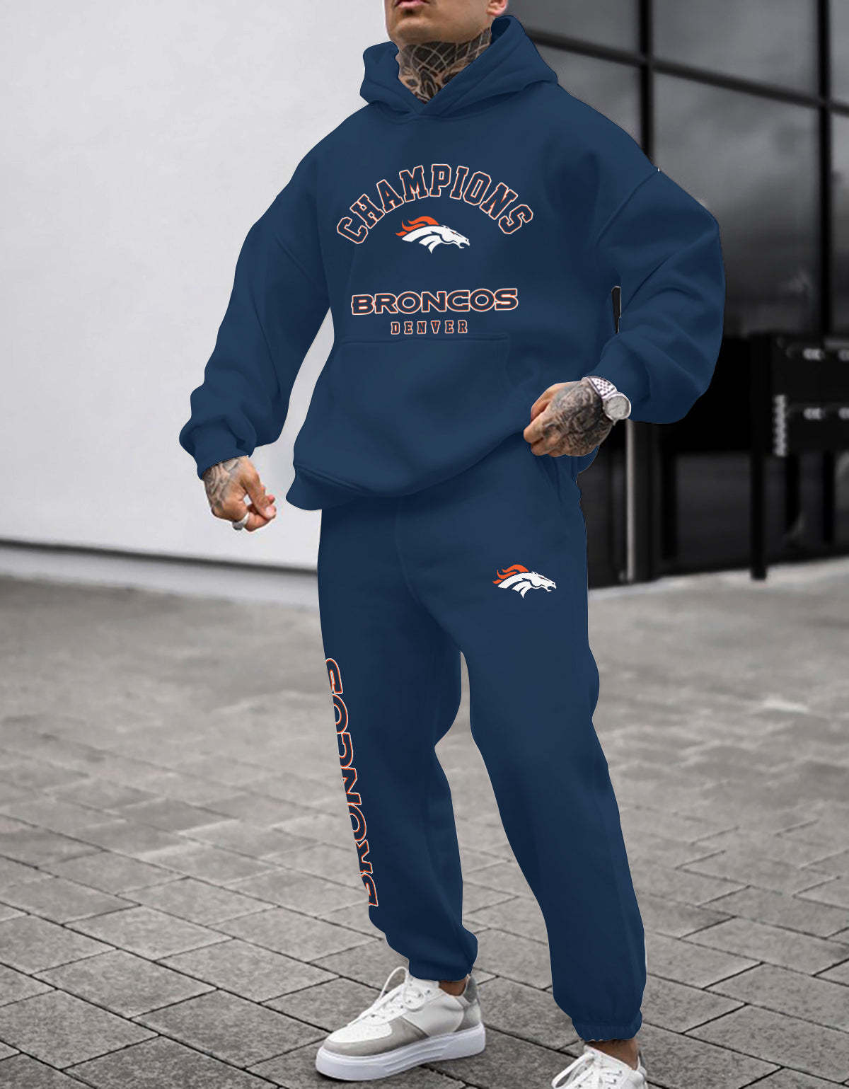 (Plus Velvet)Denver Broncos 3D Printed Pullover Hoodie And Sweatpant 2pcs Tracksuits