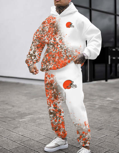 (Plus Velvet)Cleveland Browns 3D Printed Pullover Hoodie And Sweatpant 2pcs Tracksuits