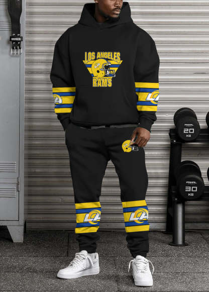 (Plus Velvet)Los Angeles Rams 3D Printed Pullover Hoodie And Sweatpant 2pcs Tracksuits